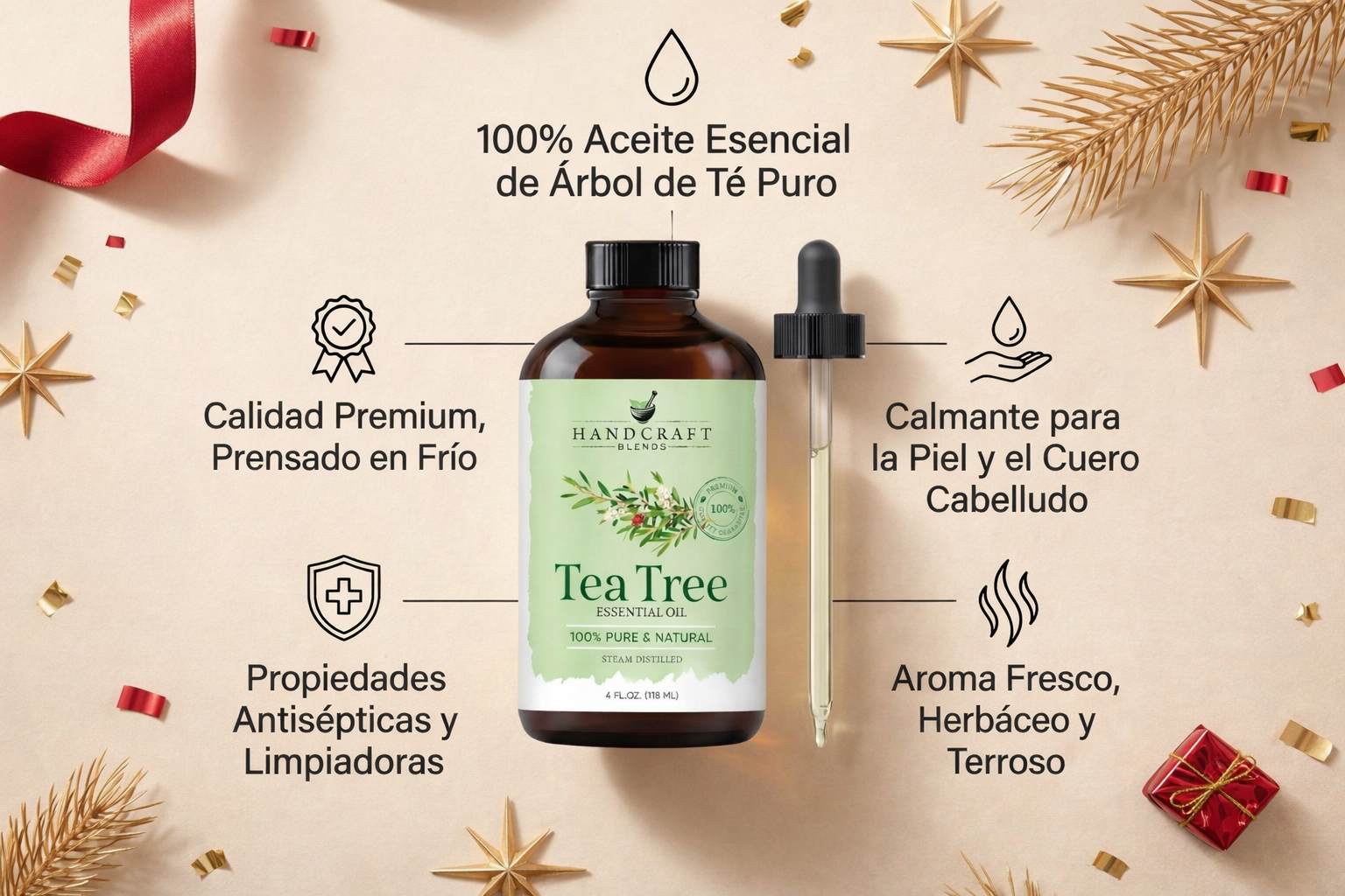 Aceite Esencial de Árbol de Té Handcraft Blends 100% Puro – 118 ml (4 oz) – Grado Premium