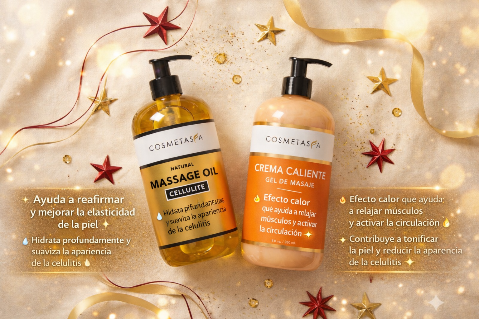 Cosmetasa Aceite de Masaje y Crema Caliente Anticelulítica – 260 ml